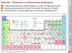 Die Erfordernis nimmt zu, tiefergehendes Wissen und Verständnis für chemische Prozesse zu haben. Leiterplatten werden Säuren und Laugen ausgesetzt. Erdalkali- und Alkalimetalle, Halbmetalle, Nichtmetalle und Edelgase finden sich in Lacken, Loten, Flußmitteln und Vergußmassen ebenso, wie in allen elektronischen Komponenten.