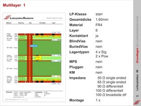 Exemplarische Dokumentation von einfachen ein- und doppelseitigen Leiterplatten bis hin zu komplexen Multilayern. Grafische Beschreibung der notwendigen Anforderungen an den Aufbau von Multilayersystemen.