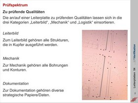 Einordnung der zu prüfenden Qualitäten in ein möglichst komplettes Prüfspektrum für die Verifikation von Leiterplatten. Definition der Wertigkeiten Leiterbild, Mechanik und Dokumentation.