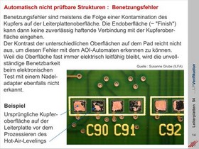 Automatisch nicht prüfbare Leiterbildstrukturen auf Leiterplatten. Elektronisch nicht erkennbare Fehler. Nicht detektierbare Abweichungen vom Leiterbildquerschnitt durch die Rückätzung.