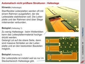 Vermessen und bewerten der Positionierung von Nutzenstegen. Diskrete Analyse der Abstände auf starren und starrflexiblen Multilayern in Abhängigkeit von der Geometrie der Leiterplatten. Stegbreiten, Freistellungen und mechanische Stabilität.