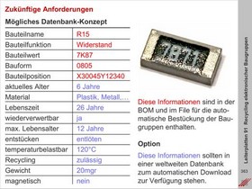 Einschätzung der Variantenvielfalt von SMD-Komponenten.Schadstoffhaltige Bauteile. Elektronische Anwendungen im industriellen Umfeld, z.B. der Automotive. Kostenintensive Bauteile.